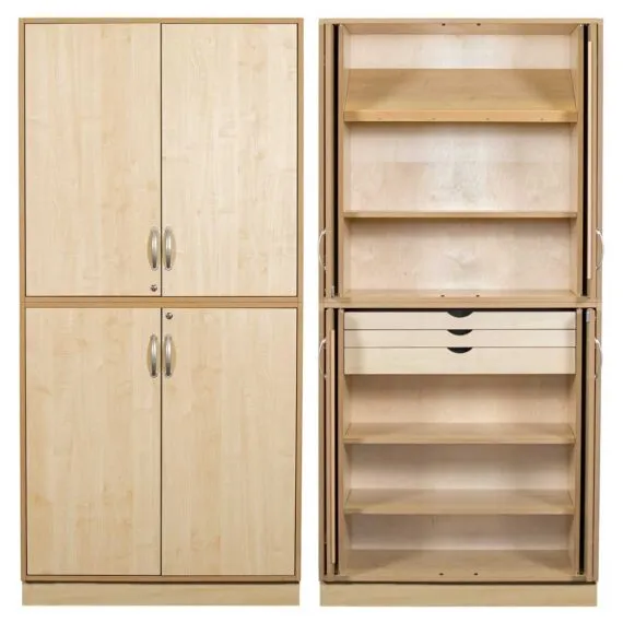 Dieses Schranksystem ist für viele Anwendungsbereiche – etwa in der Schule, im Büro oder in Arbeitsräumen geeignet.