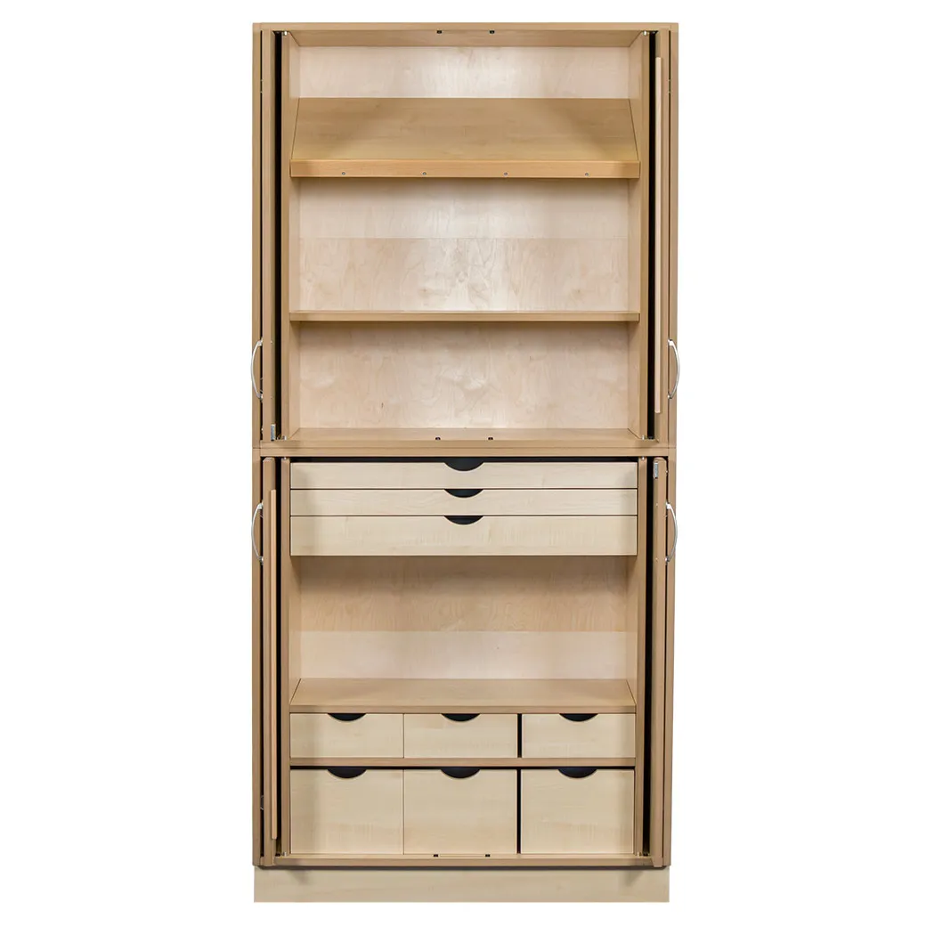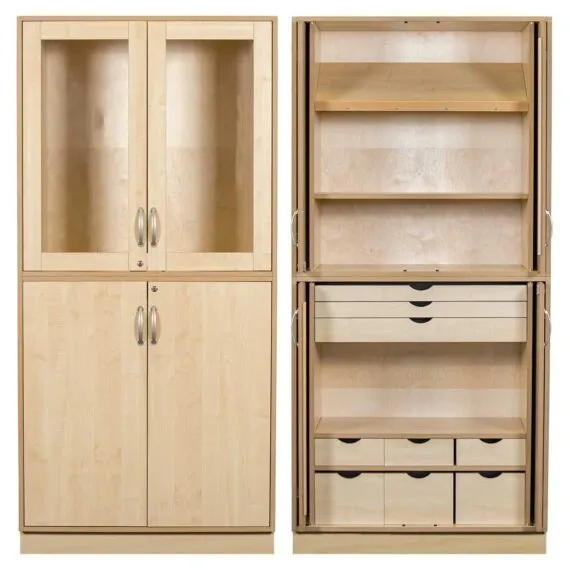 Robust und schön für vielfältigen Gebrauch. Um lange Haltbarkeit und Lebensdauer zu gewährleisten, werden Grundmodell samt Einteilung innen aus 19 mm starkem Melamin beschichtet MDF hergestellt. Die Türen lassen sich jeweils in den Öffnungen der Schrankseiten versenken.