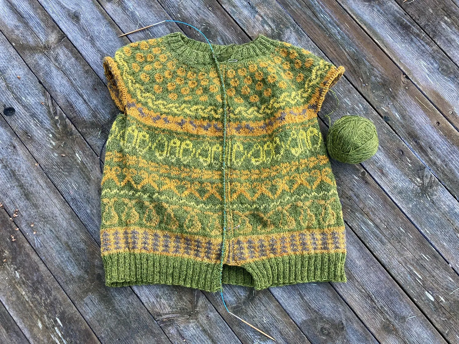 – Projekten som jag är mest stolt över är när jag lyckats övervinna en ny stickteknik. Som min första spetssjal eller nu i ett senare projekt där jag stickat med två färger samtidigt, det gör mig lite gladare över slutresultatet. Och jag tror att jag får större förståelse för mina elever som kämpar med att pricka tråden i nålsögat, genom att utsätta mig själv för utmaningar. För även om det inte gäller en tråd och ett nålsöga för min del, så är jag ändå i precis samma stadie i något av mina projekt, säger Emma.