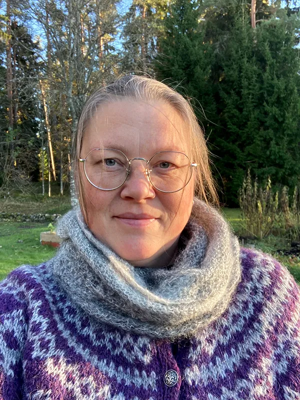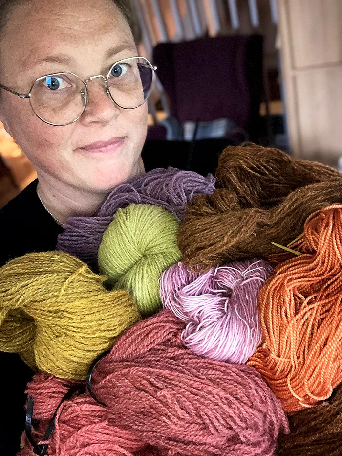 Emma Lejbro jobbar som textilslöjdslärare på två låg- och mellanstadieskolor i Sävsjö. På fritiden umgås hon gärna med familjen och tycker om att pyssla i trädgården. Hon blir lycklig av att få se saker gro och växa. Stickning är hennes stora passion i livet, men Emma har ett brett intresse för det textila hantverket. Hon färgar sitt eget garn med växt- och syrafärger, och syr kläder och bruksföremål när det behövs. Eftersom en stor del av både arbetstid och fritid kretsar kring skapandet, är glädjen såklart viktig.