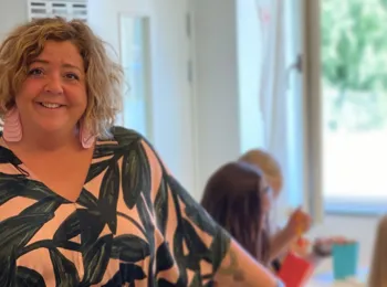 Kvinna med glasögon och grön tröja