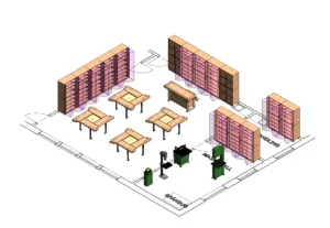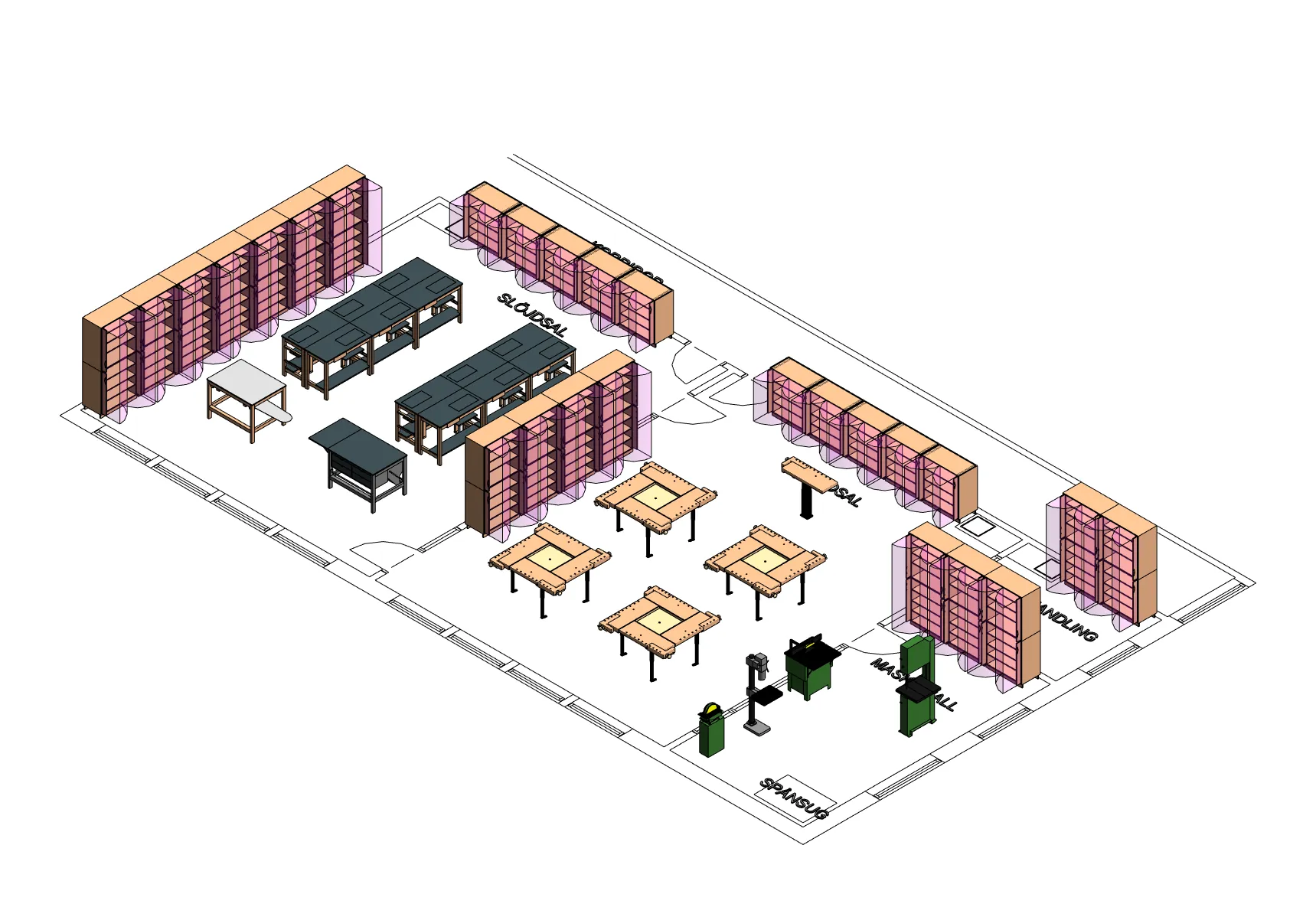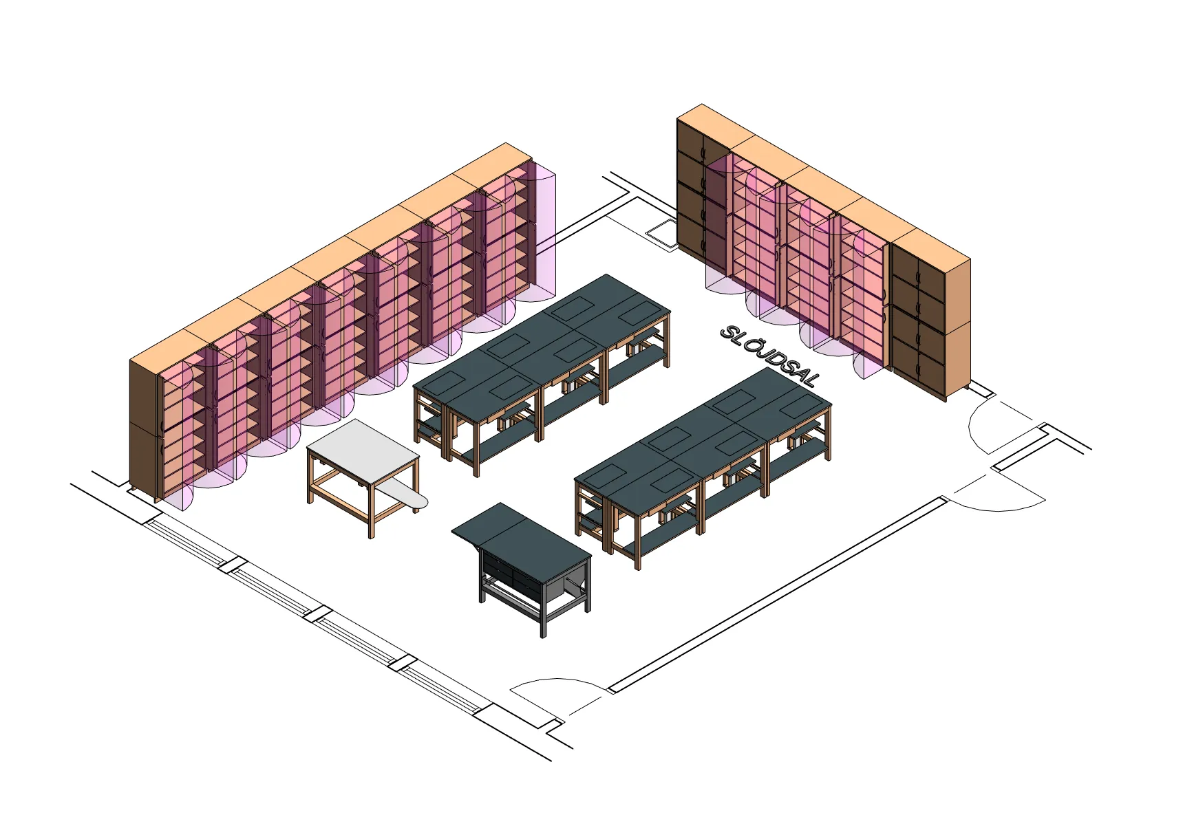 Vi levererar kompletta slöjdsalar över hela landet. Om du är arkitekt eller på annat sätt verkar i föreskrivande led kan vi hjälpa dig hela vägen från ritning och produktval till leverans och färdig slöjdsal. Vill du planera på egen hand kan du använda dig av våra layouter på slöjdsalar, eller skapa din egen miljö genom att ladda ner våra produkter som BIM-objekt eller som 3D-modeller för pCon.planner. Våra layouter är arkitektritade och utformade för att erbjuda god tillgänglighet och en sund och kreativ arbetsmiljö.