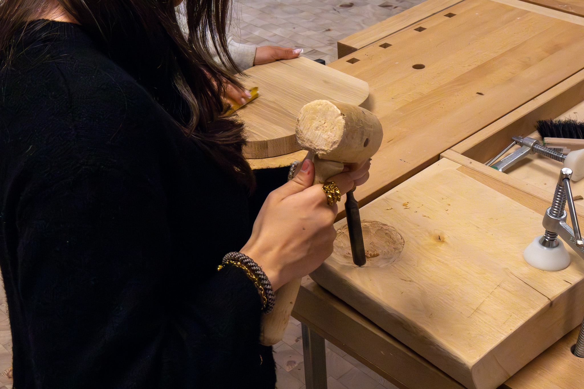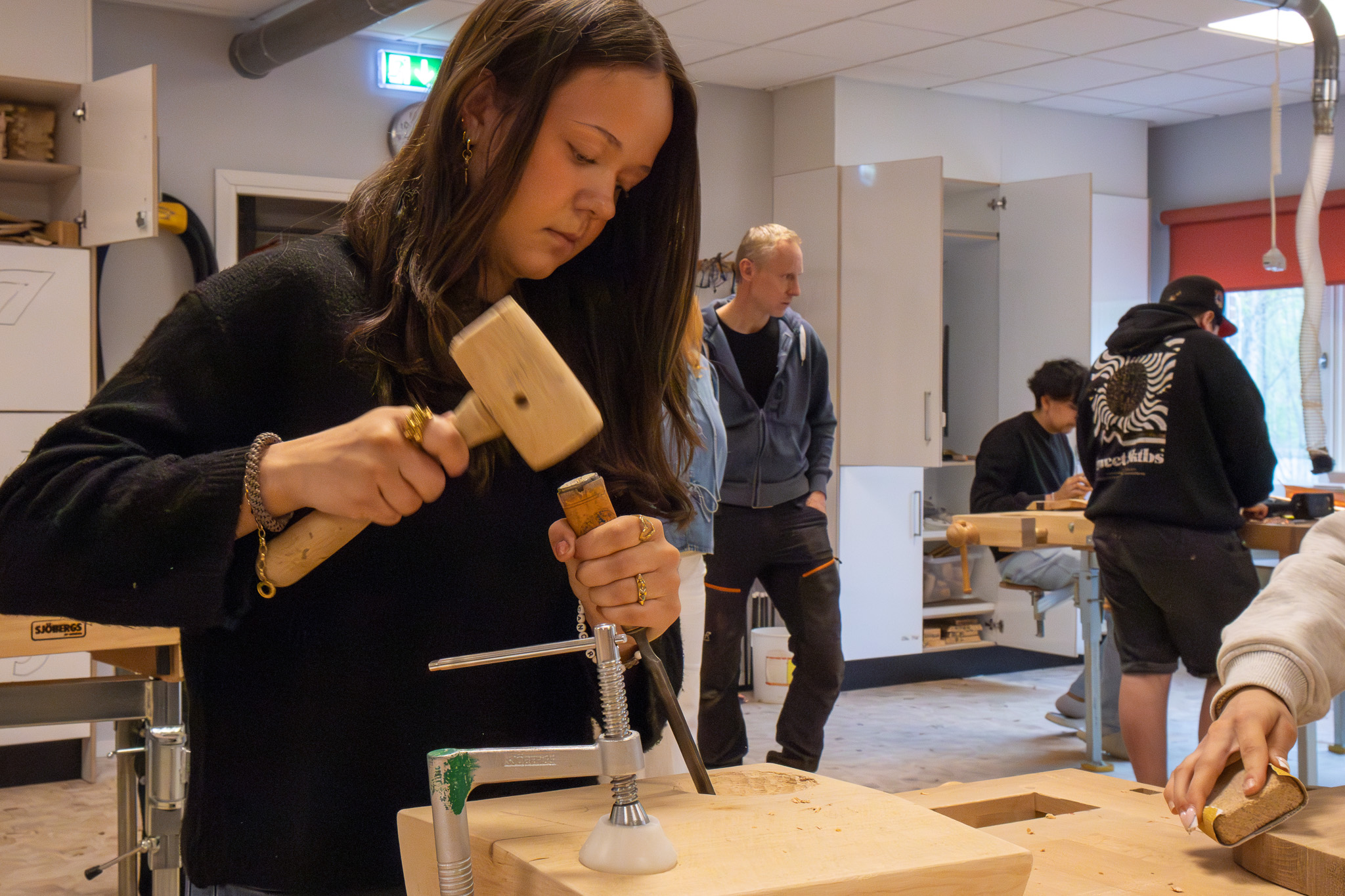 – ”Jag har alltid hållit på hemma med trä, byggt både större och mindre grejer. Det sitter i fingrarna på något sätt,” säger han. ”Vissa delar i slöjden är nya för mig, men det finns ändå en trygghet i materialen.”