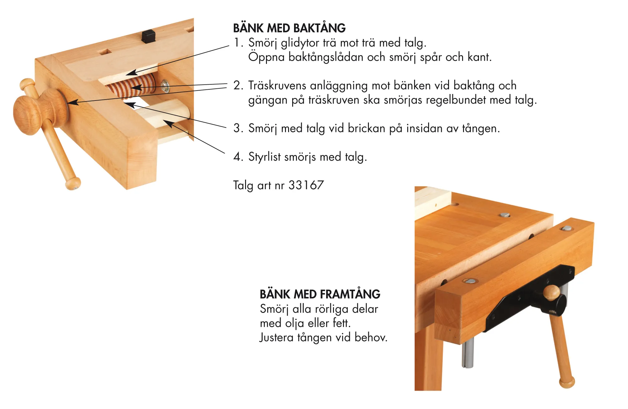 För smörjning av hyvelbänkens rörliga delar på alla Sjöbergs bänkar med träskruv. Räcker till ca 16 bänkar.